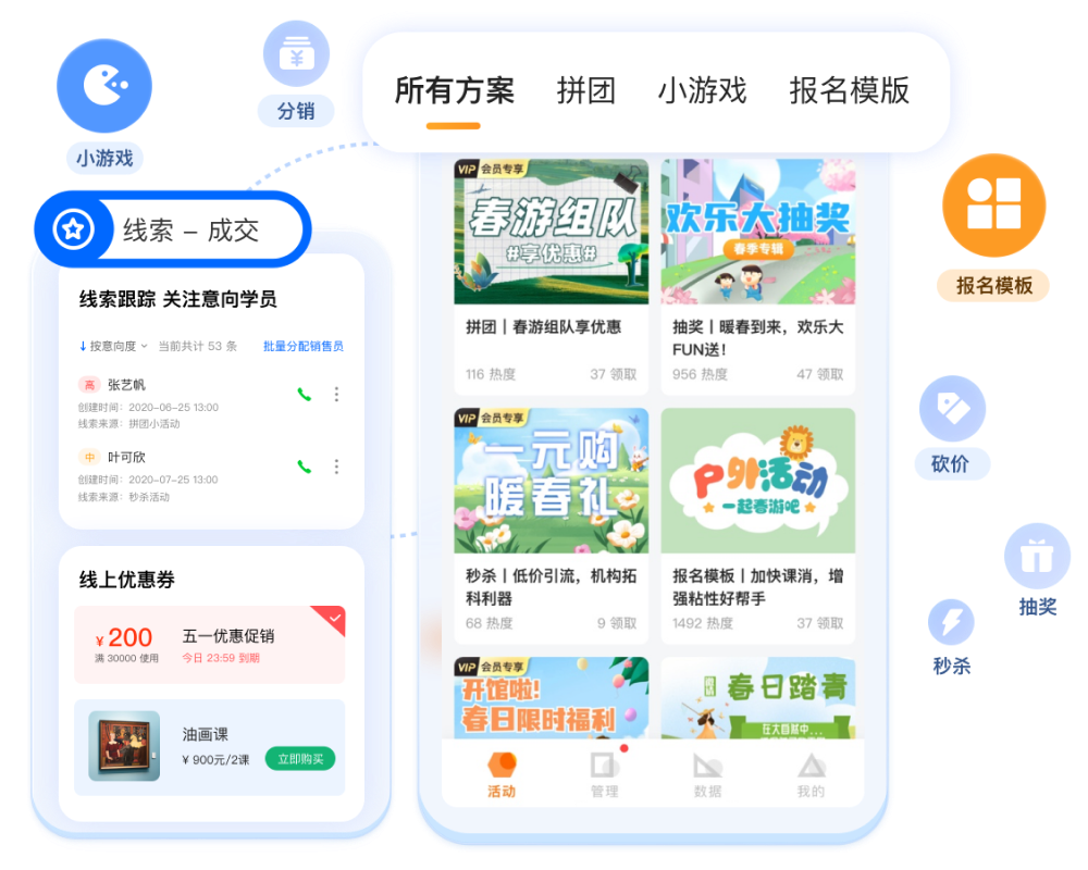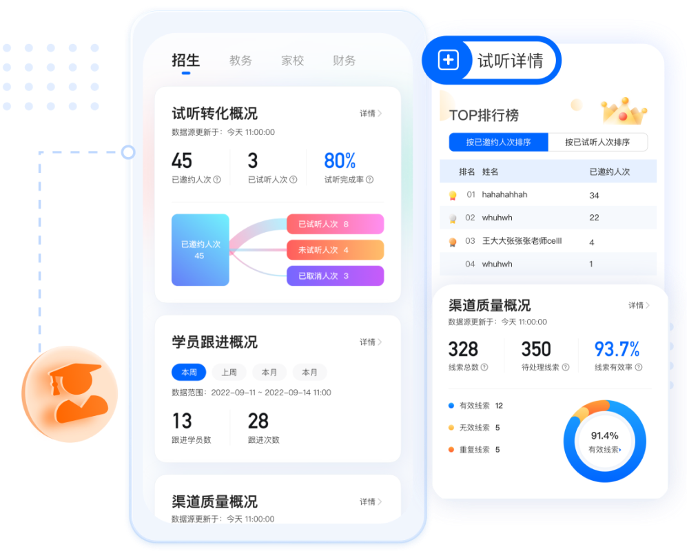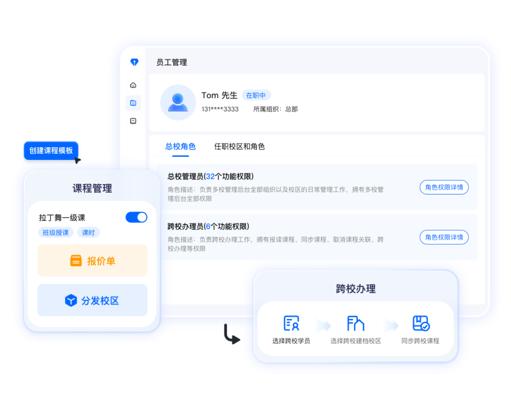 支持直营/加盟商/连锁多种经营模式,满足校长不同的管理模式