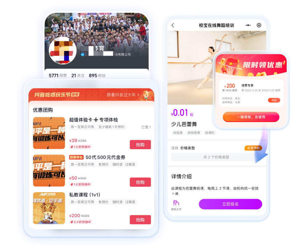 6 亿+ 日活流量,线上门店展示商品团购活动