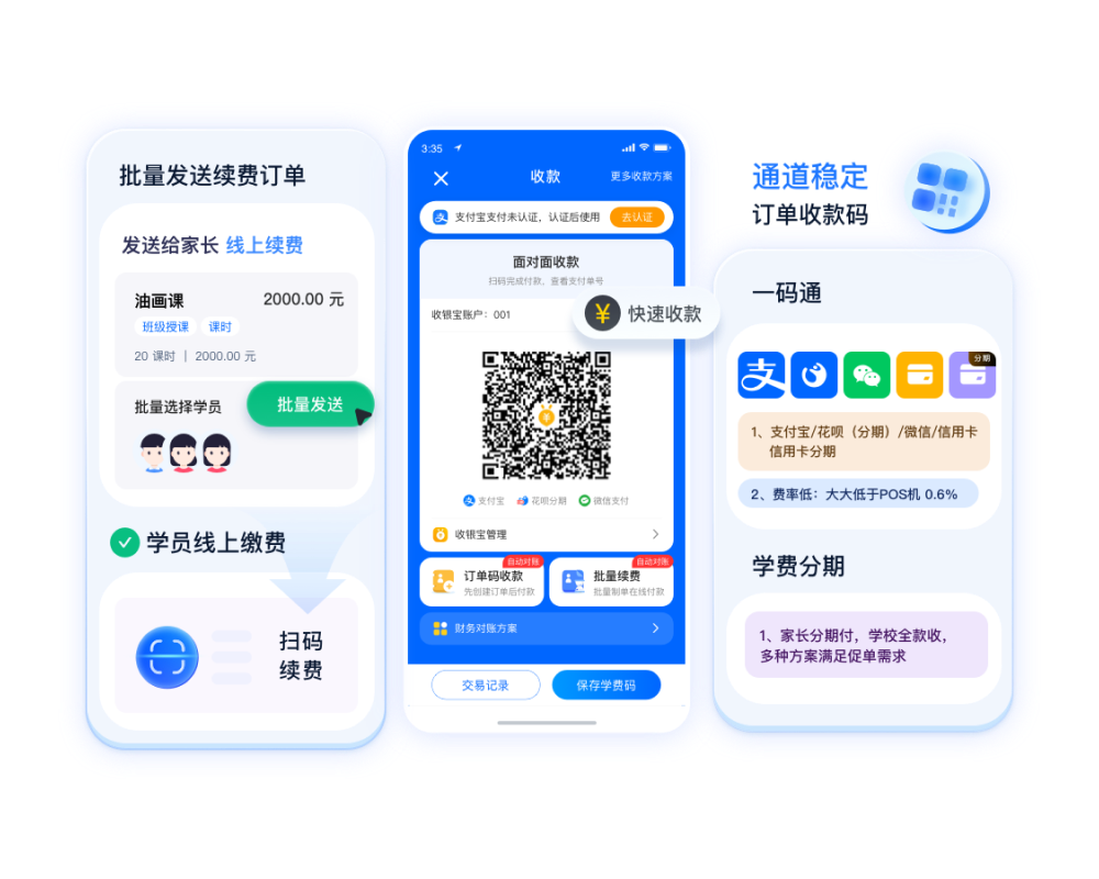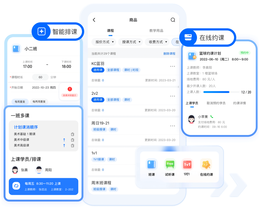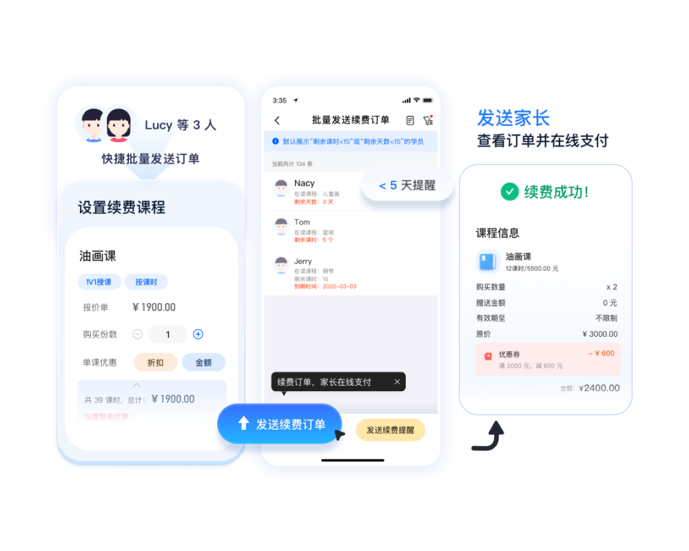 在线售卖不同价格的课程、教材,家长自由续费、选班