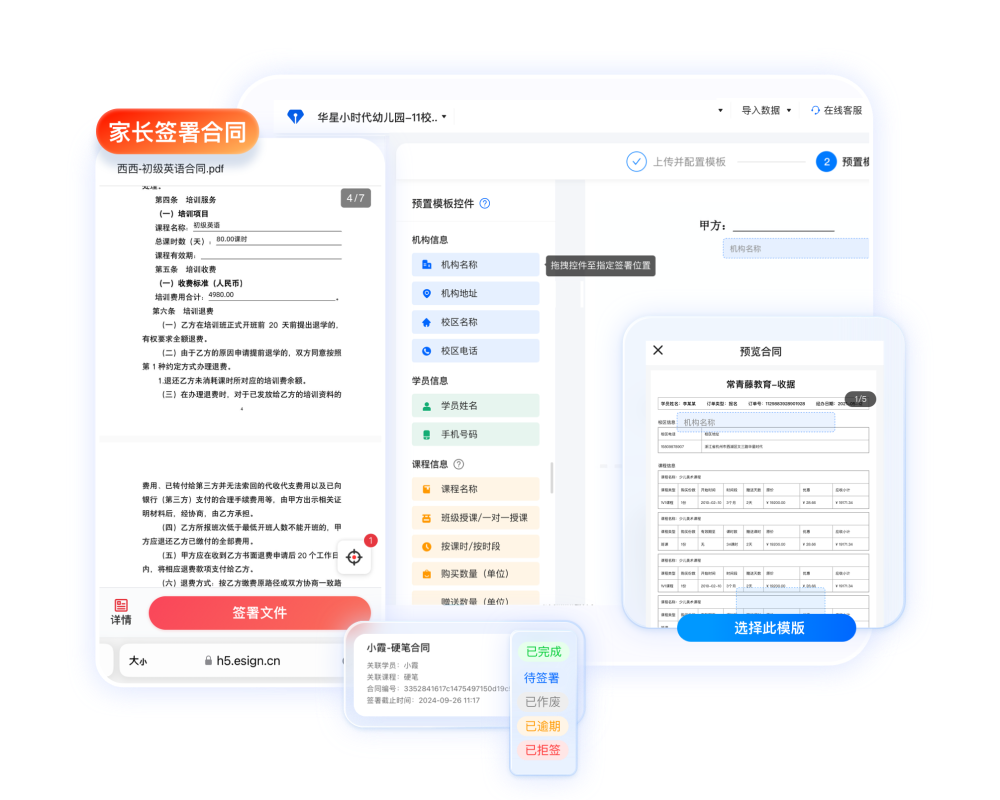 自动标记签署状态,及时跟进未签署合同,确保机构家长双方权益
