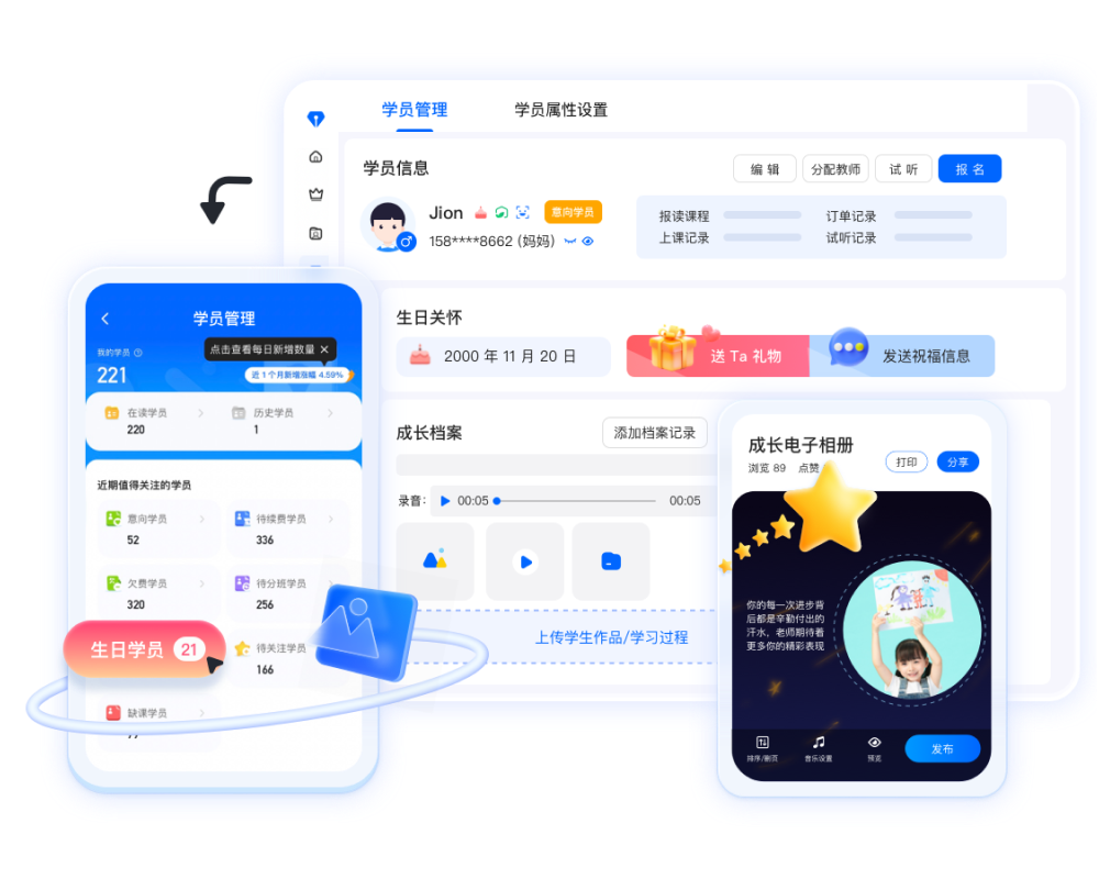 课后点评等教学成果自动关联转介绍,为机构带来线索