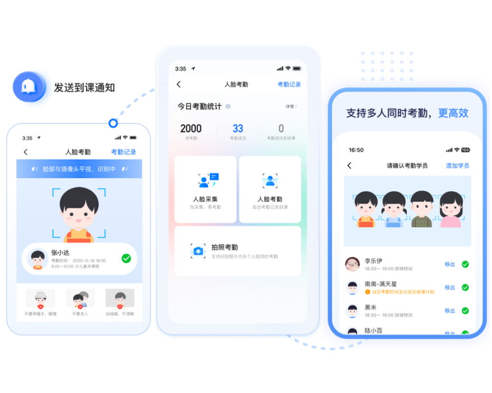 设备极速识别,刷脸就考勤,消息实时同步家长
