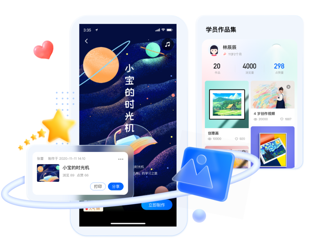 电子相册、作品集、3D 展览馆记录学员动态,随手分享
